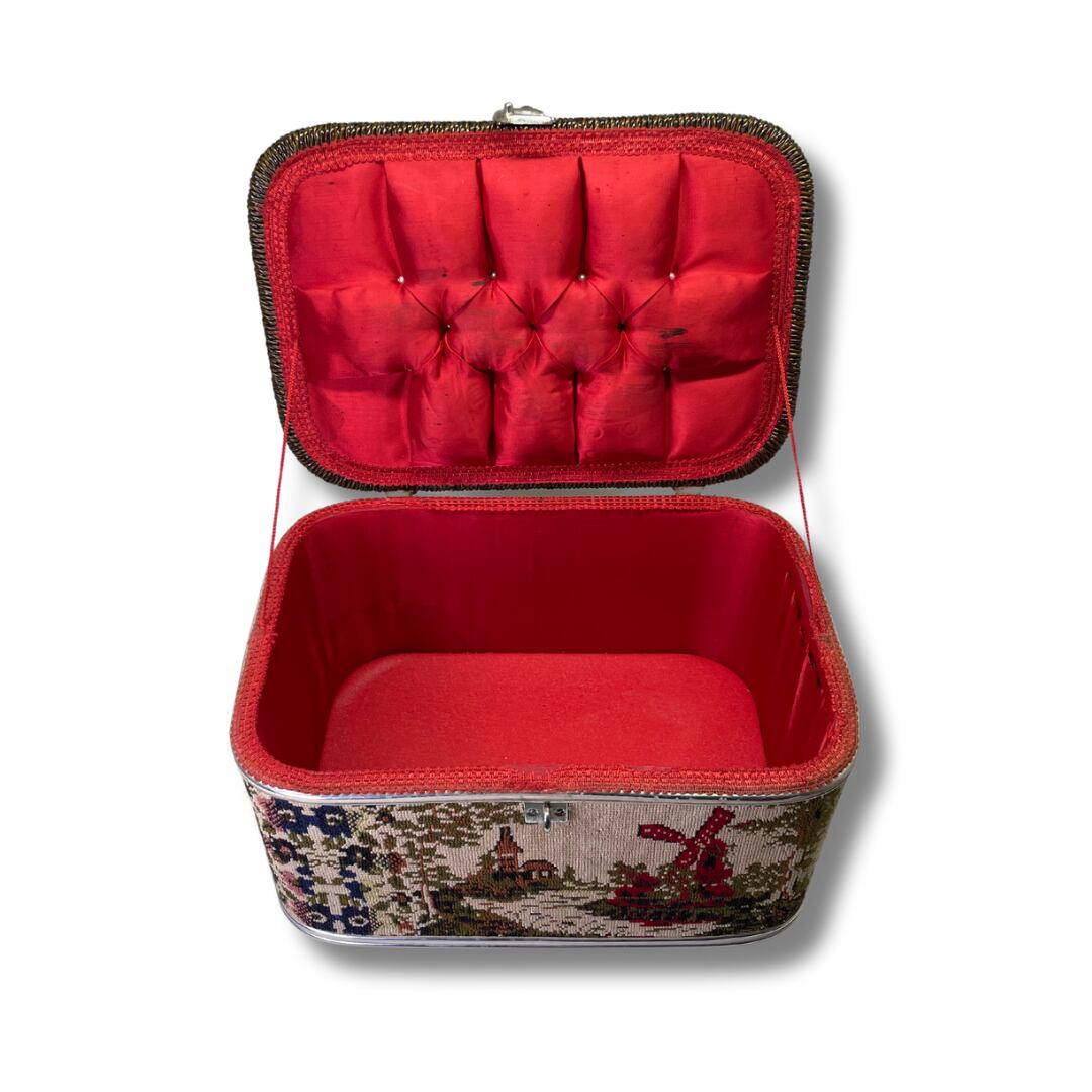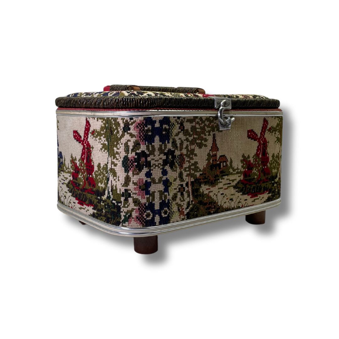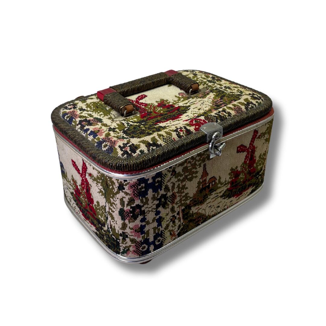 刺繍 vintage bagは、どこか懐かしさを感じさせるデザインが魅力的。たっぷりと収納できるサイズ感ながらも、可愛い一品です。内側にはしっかりとしたクッションがあり、大切な物(ガラスお皿、ガラスコップ)などを安心して収納できます。刺繍のデザインは、キャンプやピクニックの空間のワンポイントになり、オススメです。