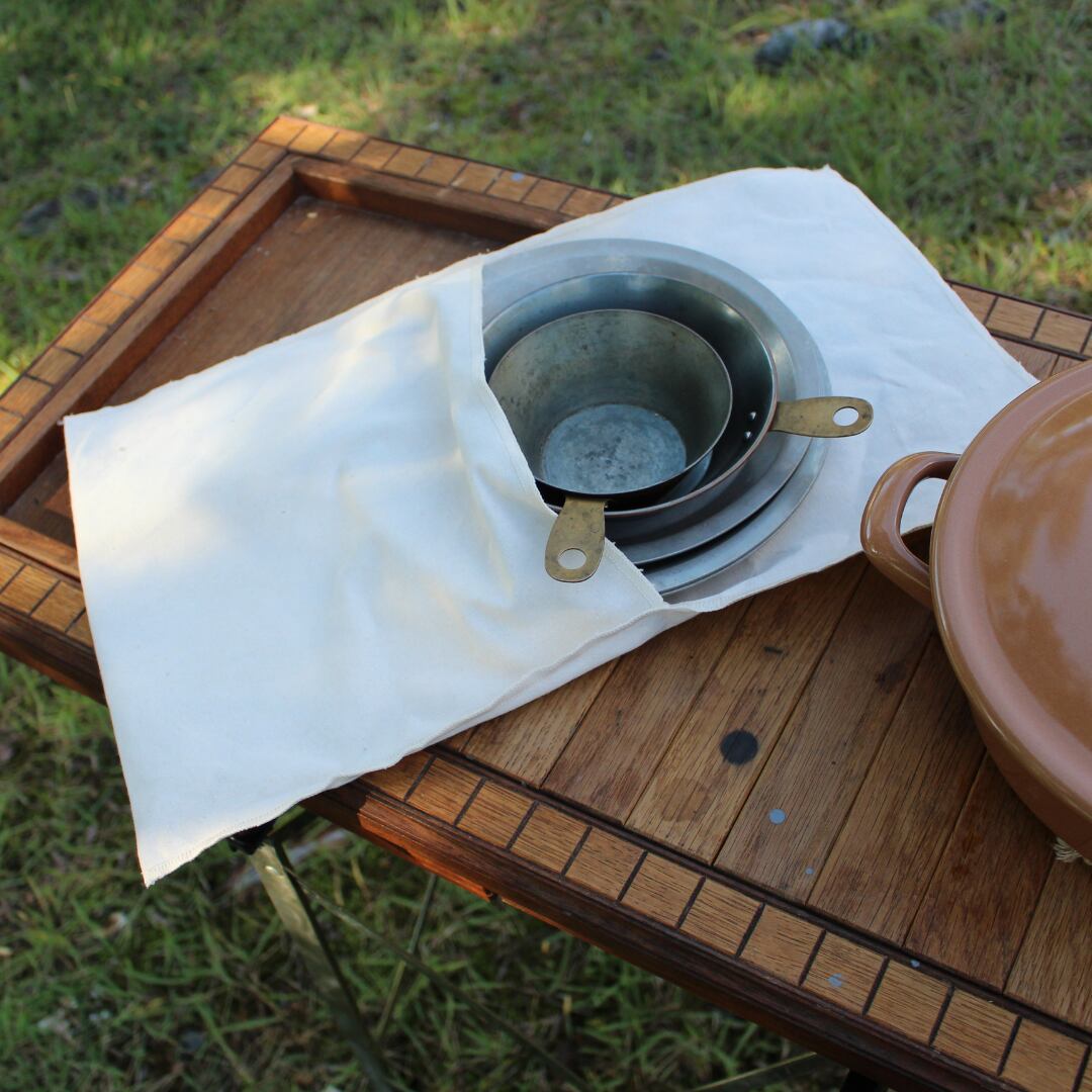 コットン生地で作られていて、大切なお皿をしっかりと保護します。キャンプでの使用はもちろん、家で使う際にも最適で、軽くて持ち運び簡単。 『シンプル』デザインは、どんなキャンプスタイルでも相性が良くて空間を邪魔することなくお皿を入れている袋を隠さなくても大丈夫。